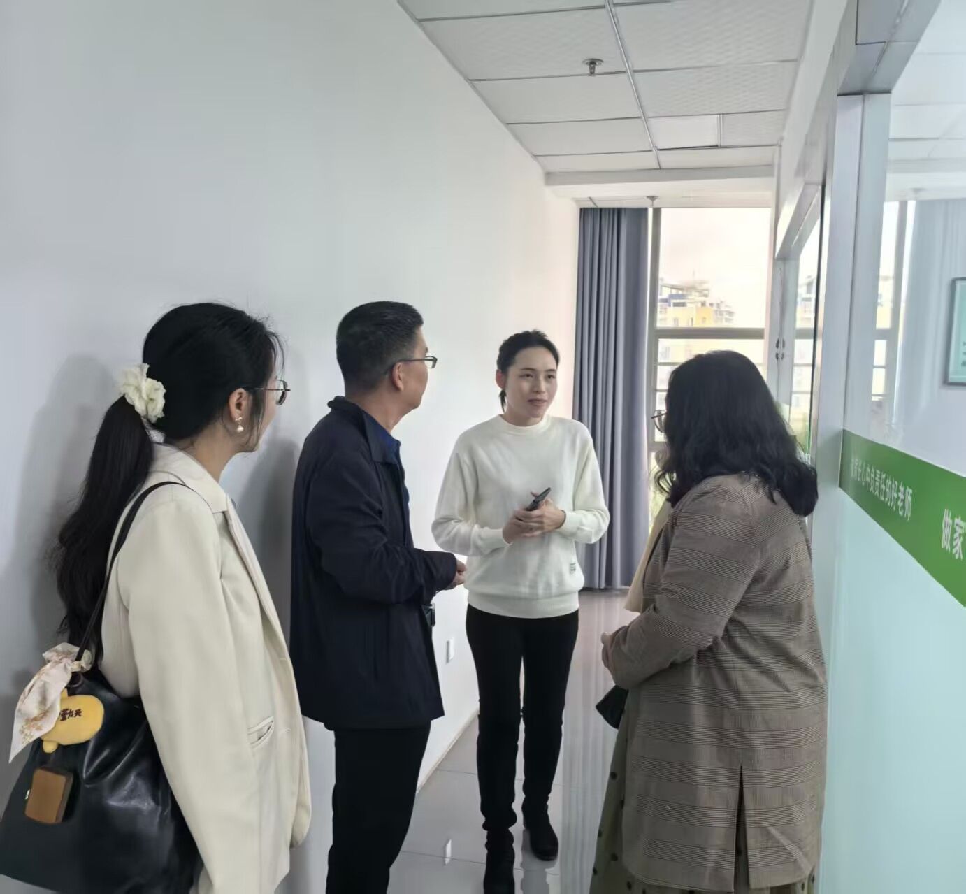 师生先后参观了明大教育 “三美校区” 的办公区域、一对一教学教室及教师教研场所。陆总监详细介绍了各功能区域的布局与用途,重点讲解了一对一教学模式的运作流程及教研团队的工作机制,直观展现了企业的教学环境与办学特色,让师生对明大教育的教学模式有了全面且深入的认识。