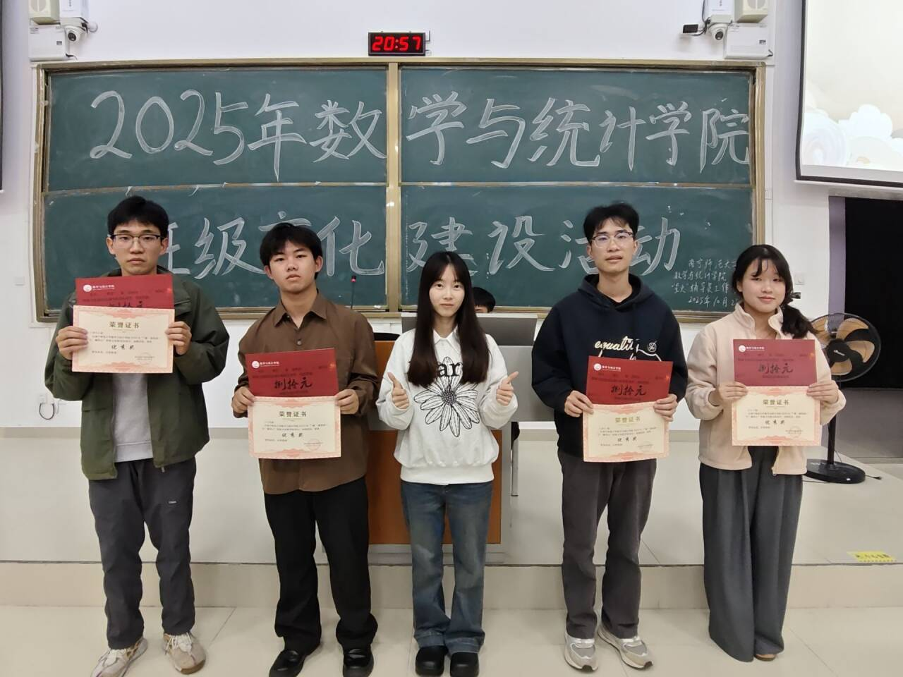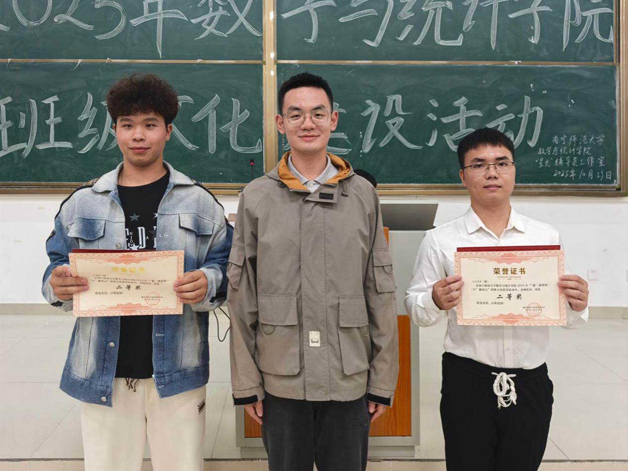 活动以王卫彬副书记致开幕词解开帷幕。王副书记在讲话中鼓励同学们在班级文化共创活动中加强集体意识与团结协作,实现“1+1>2”的凝聚力升级。活动现场,同学们围绕班徽、班级口号、班旗、班服、班歌等元素展开分享。各班级将班徽融入垂直坐标系、函数表达式等学科符号,以数学符号搭配科技元素的风格设计班服,班歌构思凸显“闪耀、奋斗”的青春气质。其中蕴含的创意设计将数学之美、逻辑之严与文字之优深度融合,彰显出班级独特的学科底色。经过评委评审,最终评选出最具数风奖1名,一等奖1名,二等奖2名,三等奖3名,优秀奖4名。活动最后,梁卡霖老师表示,本次活动既为班级搭建了文化展示的舞台,更锻炼了同学们的综合能力,展现出班级自信风貌。